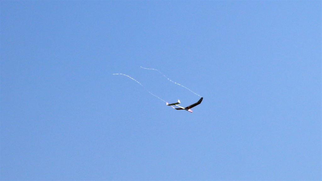 邪魔にならずにそれなりに抵抗になるように、翼端ヒラヒラの長さを切りながら調節していたところ、結構しっかりしたサーマルに捕まりました。